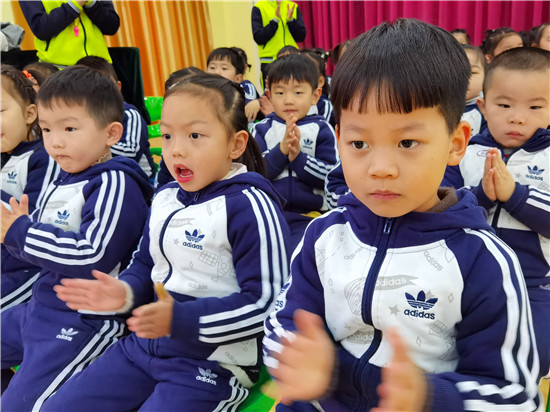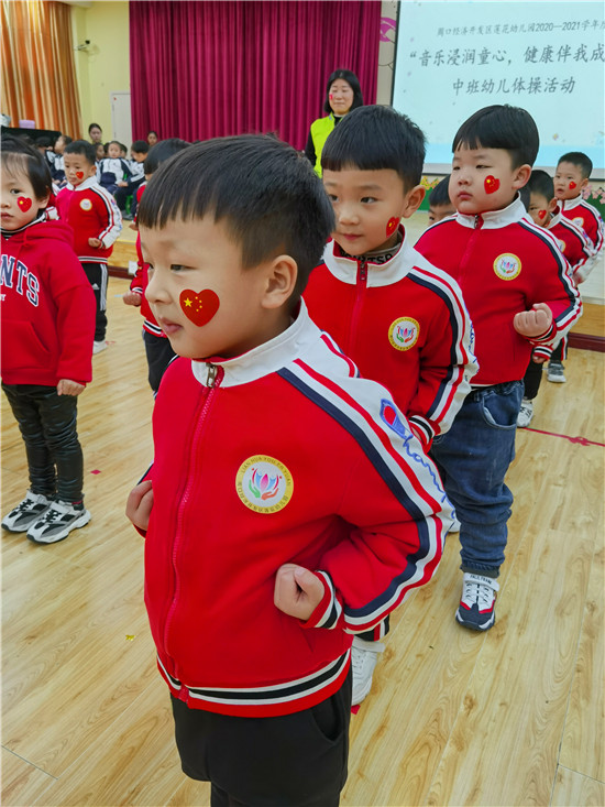 在熱情洋溢的音樂中,中班的運(yùn)動健兒們,雄赳赳氣昂昂地入場了。瞧!他們個(gè)個(gè)精神抖擻,活力四射,整齊的步伐,響亮的口號,無不體現(xiàn)蓮幼兒童的活潑、自信?!笆澜缯婷篮谩钡捏w操音樂響起,幼兒快樂地舞動身體,時(shí)而裝作勇敢的海鷗,時(shí)而扮作講衛(wèi)生的小花貓,時(shí)而又成了互幫互助的企鵝?;铎`活現(xiàn)的動物模仿操,迎來現(xiàn)場觀眾的熱烈掌聲。隨著一聲響亮的“嘿、哈”,幼兒扎馬步、出拳,一氣呵成。小小的身體,展現(xiàn)大大的能量。掌握中國功夫,鍛煉強(qiáng)健體魄,我們都是功夫?qū)殞?!瞧!大班幼兒在動感的音樂和老師的指揮中精神抖擻、踏著整齊的步伐入場了,他們靈活、有序地變換著各種隊(duì)形,像一個(gè)個(gè)快樂的小精靈。在歡快的音樂中,幼兒都十分投入,和著音樂的節(jié)奏,動作協(xié)調(diào)、整齊有力,時(shí)而還發(fā)出“哼哈”的口令聲呢!他們開心地跳著、笑著,跳出了快樂、跳出了自信、跳出了他們對運(yùn)動的喜愛,對健康的追求。