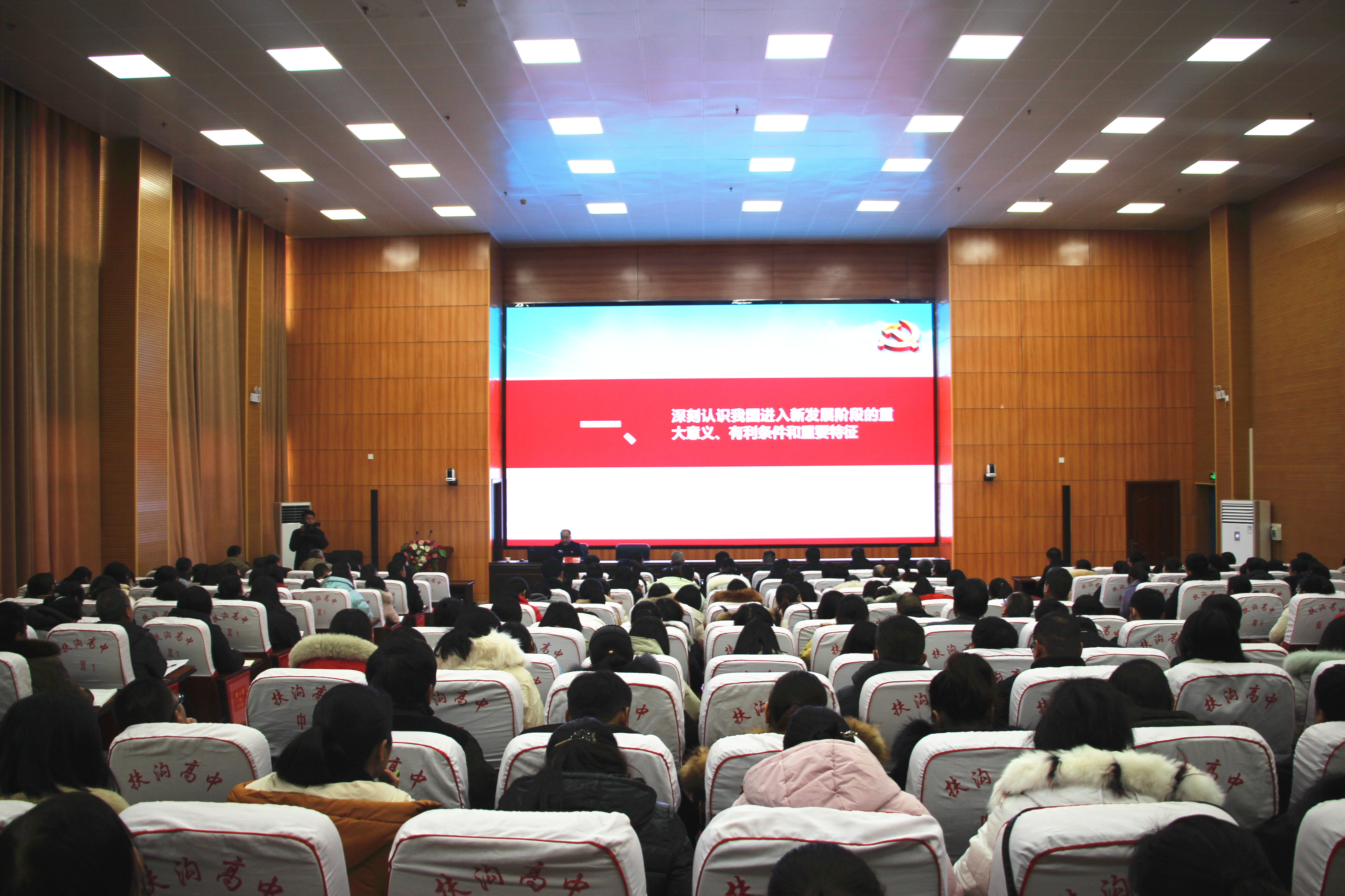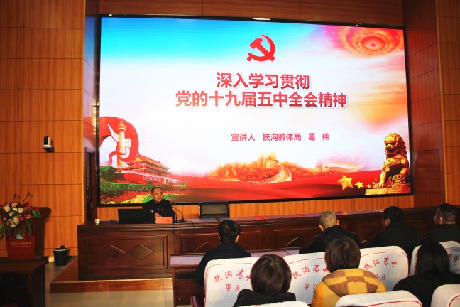 12月12日下午,扶溝縣高中德馨樓七樓會(huì)議室掌聲陣陣、座無虛席,扶溝縣學(xué)習(xí)貫徹黨的十九屆五中全會(huì)精神縣委宣講團(tuán)縣高中報(bào)告會(huì)正在這里舉行,宣講會(huì)特邀縣教體局黨組書記葛偉進(jìn)行宣講,局機(jī)關(guān)班子成員,縣高中班子成員和400余名教師參加了宣講會(huì)。
