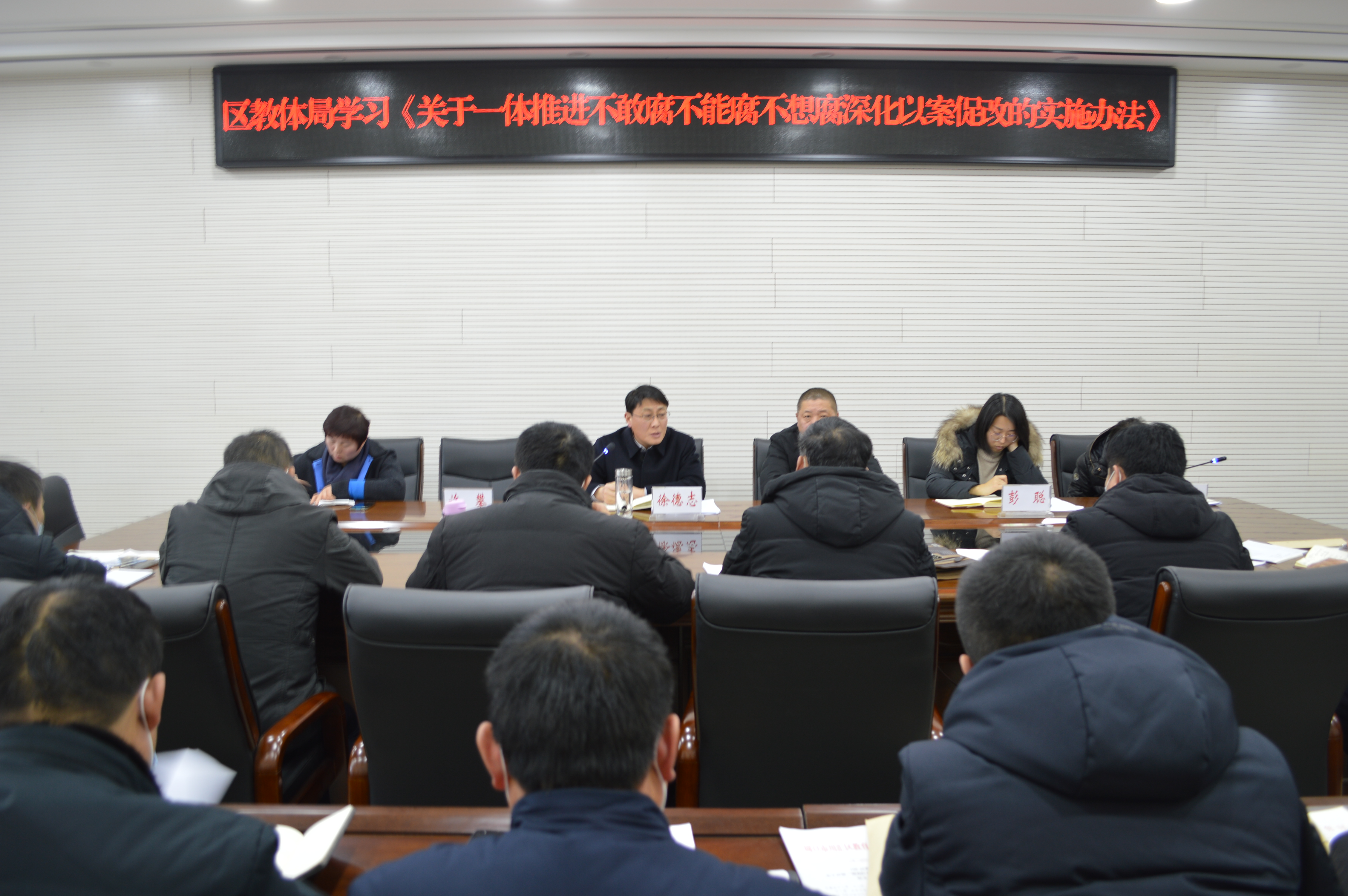 本報(bào)訊 (記者 劉華志 通訊員 朱德歌 文/圖)12月15日,川匯區(qū)教體局召開(kāi)一體推進(jìn)不敢腐不能腐不想腐深化以案促改工作會(huì)議,深入學(xué)習(xí)貫徹落實(shí)《關(guān)于一體推進(jìn)不敢腐不能腐不想腐深化以案促改的實(shí)施辦法》,對(duì)下一步深化以案促改、全面從嚴(yán)治黨進(jìn)行再動(dòng)員、再部署。