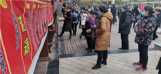 一大早,來自川匯區(qū)文聯(lián)、區(qū)民協(xié)的工作人員,將金色東方社區(qū)的休閑廣場裝扮得格外喜慶,兩條帶有傳統(tǒng)紋飾圖案的噴繪印著謎語和黨的知識,掛在休閑長廊上,吸引著出來曬太陽或散步的居民。區(qū)文聯(lián)黨組書記史濤,區(qū)文聯(lián)黨組成員、副主席游富華,區(qū)人和辦事處副書記武陽,市民協(xié)副主席羅營東、區(qū)民協(xié)主席杜超,區(qū)民協(xié)秘書長任建明等走進(jìn)社區(qū),參加這場活動。“中國共產(chǎn)黨是什么時候成立的?”“1921年7月23日”“答對了,獎洗衣液一壺!”游富華以問答的形式和居民們互動,向居民們普及黨的知識,居民們紛紛參與,氣氛活躍。