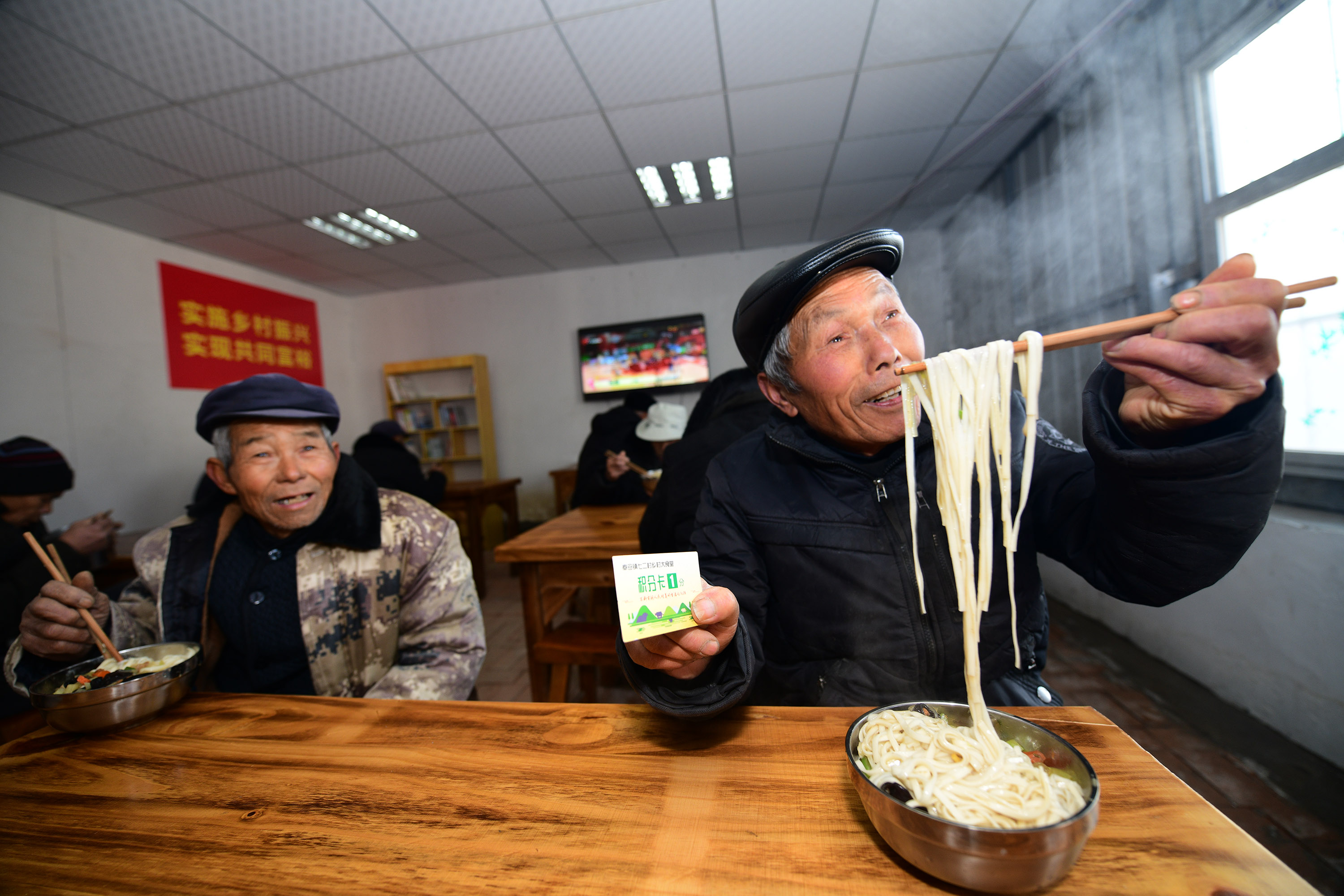 “開飯嘍!”隨著一聲喊,十幾位老人走進(jìn)炊煙裊裊、菜飯飄香的小院,拿著碗和積分卡,排隊(duì)打飯。這是12月15日中午,記者在西華縣奉母鎮(zhèn)七里倉(cāng)二村看到村食堂開飯的場(chǎng)景。老人每人一碗臊子面,吃得渾身熱乎乎的。這一勺飯,讓這里的老人長(zhǎng)壽幸福,從此不再怕風(fēng)雨不再畏嚴(yán)寒。這一勺飯,是七里倉(cāng)二村今年實(shí)施土地治理后的村集體公糧,也是實(shí)施土地承包制40年來(lái)村集體里的首份余糧。