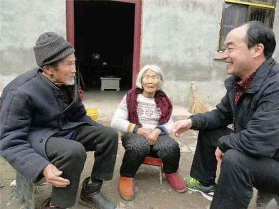 王新奇(右一)到貧困村民家中走訪 王曦健 攝