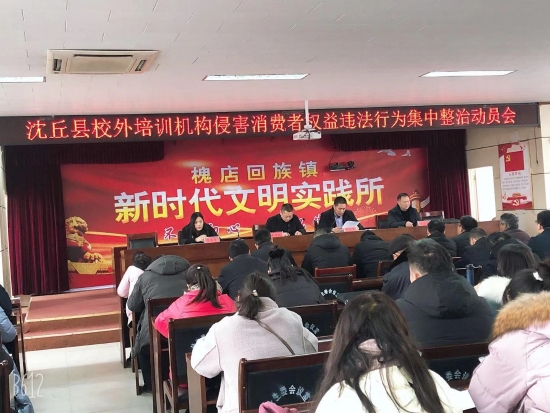 12月23日上午,沈丘縣校外培訓(xùn)機(jī)構(gòu)侵害消費(fèi)者權(quán)益違法行為集中整治動(dòng)員會(huì)在槐店鎮(zhèn)召開。出席會(huì)議的有沈丘縣市場(chǎng)監(jiān)督管理局副局長(zhǎng)李春華、教體局副局長(zhǎng)李國(guó)峰、教體局安全辦主任劉志強(qiáng)等,各鄉(xiāng)鎮(zhèn)培訓(xùn)機(jī)構(gòu)負(fù)責(zé)人參加會(huì)議,會(huì)議由槐店鎮(zhèn)鎮(zhèn)長(zhǎng)李傳勝主持。
