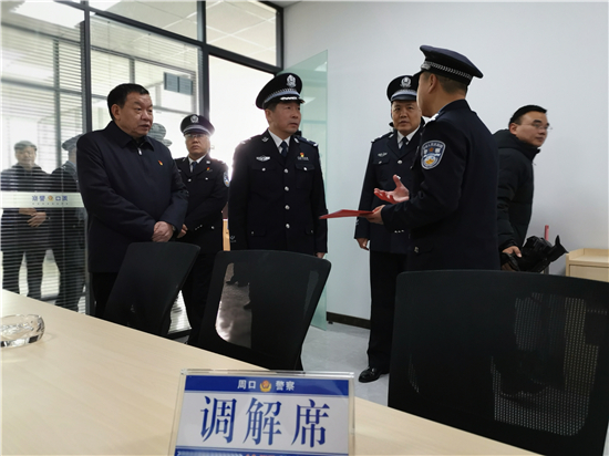 揭牌儀式后,參加儀式的全體人員實(shí)地參觀了華耀城派出所軟硬件設(shè)施等。據(jù)了解,該派出所學(xué)習(xí)借鑒一線先進(jìn)城市公安派出所營房建設(shè),具備群眾接待區(qū)、非警務(wù)警情分流區(qū)、民警工作區(qū),分區(qū)合理,同時(shí)派出所視頻指揮室更是具備了警務(wù)可視化、和警務(wù)搜索查找功能,以科技服務(wù)破案、服務(wù)民生。派出所的成立,對(duì)進(jìn)一步提升轄區(qū)打防管控水平、營造和諧穩(wěn)定的營商環(huán)境必將起到積極的推動(dòng)作用。作為華耀城派出所首任所長邵海濤表示,全所上下將始終堅(jiān)持“不忘初心、牢記使命”,大力弘揚(yáng)新時(shí)代周口公安精神,忠誠履職、忠于職守,以最高標(biāo)準(zhǔn)、最佳狀態(tài),為轄區(qū)群眾保駕護(hù)航。