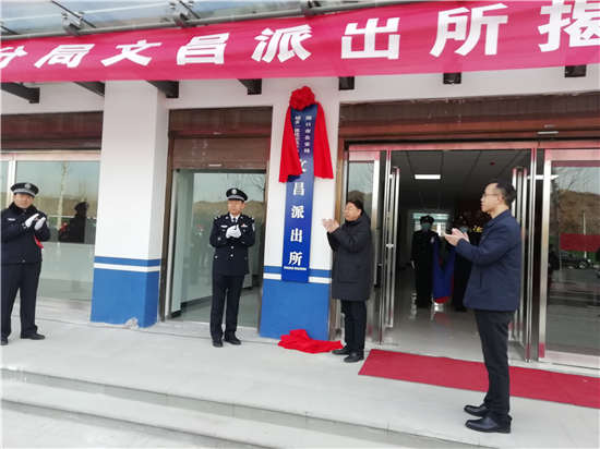 當(dāng)日上午10時(shí)許,羅海龍、丁有亮共同為文昌派出所揭牌,文昌派出所全體干警、輔警面向警旗莊重宣誓。隨后,參加儀式的全體人員實(shí)地參觀了文昌派出所軟硬件設(shè)施等。丁有亮帶領(lǐng)文昌辦事處書記、主任現(xiàn)場(chǎng)了解了民警的辦公和值班情況,叮囑文昌辦事處要大力支持派出所的工作,切實(shí)為群眾解決實(shí)際問(wèn)題。