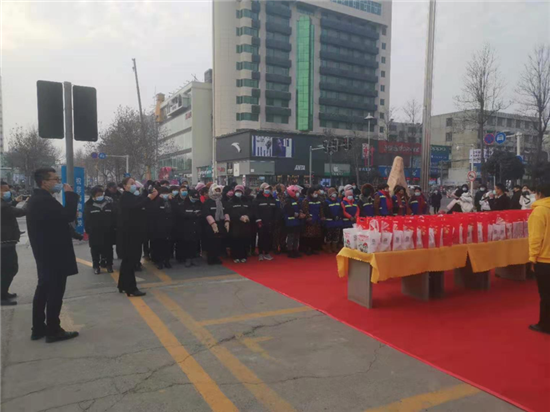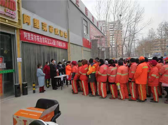 1月20日是傳統(tǒng)節(jié)日臘八節(jié),一大早,中心城區(qū)萬順達(dá)廣場就為川盛環(huán)境有限公司的環(huán)衛(wèi)工們準(zhǔn)備了臘八粥和毛巾、口罩等防疫物資,阿里市場為每名環(huán)衛(wèi)發(fā)放10元代金券,持劵可在市場內(nèi)消費購物,愛心企業(yè)為辛勤的城市美容師在寒冷的冬季送上了一份暖心的祝福。