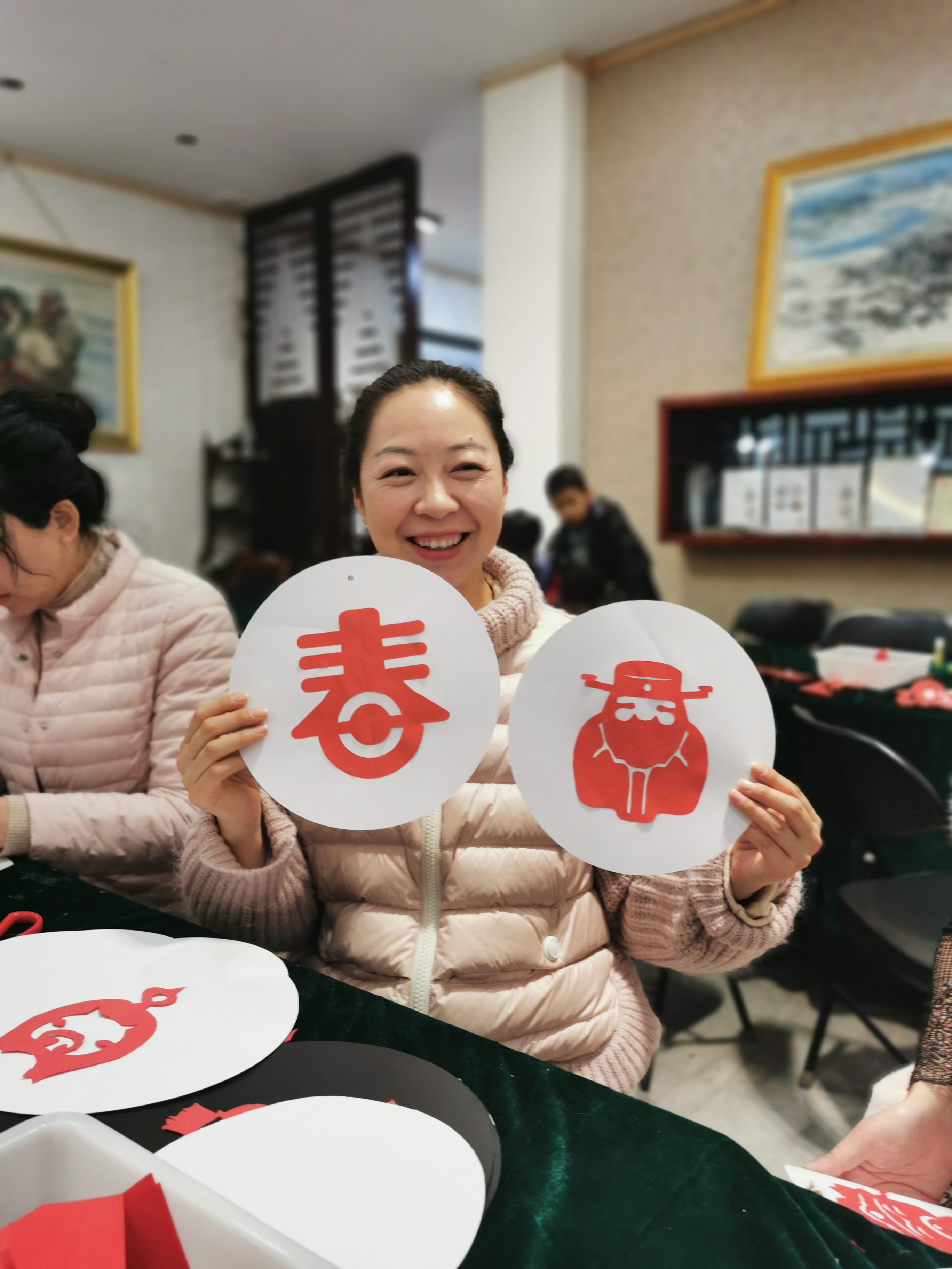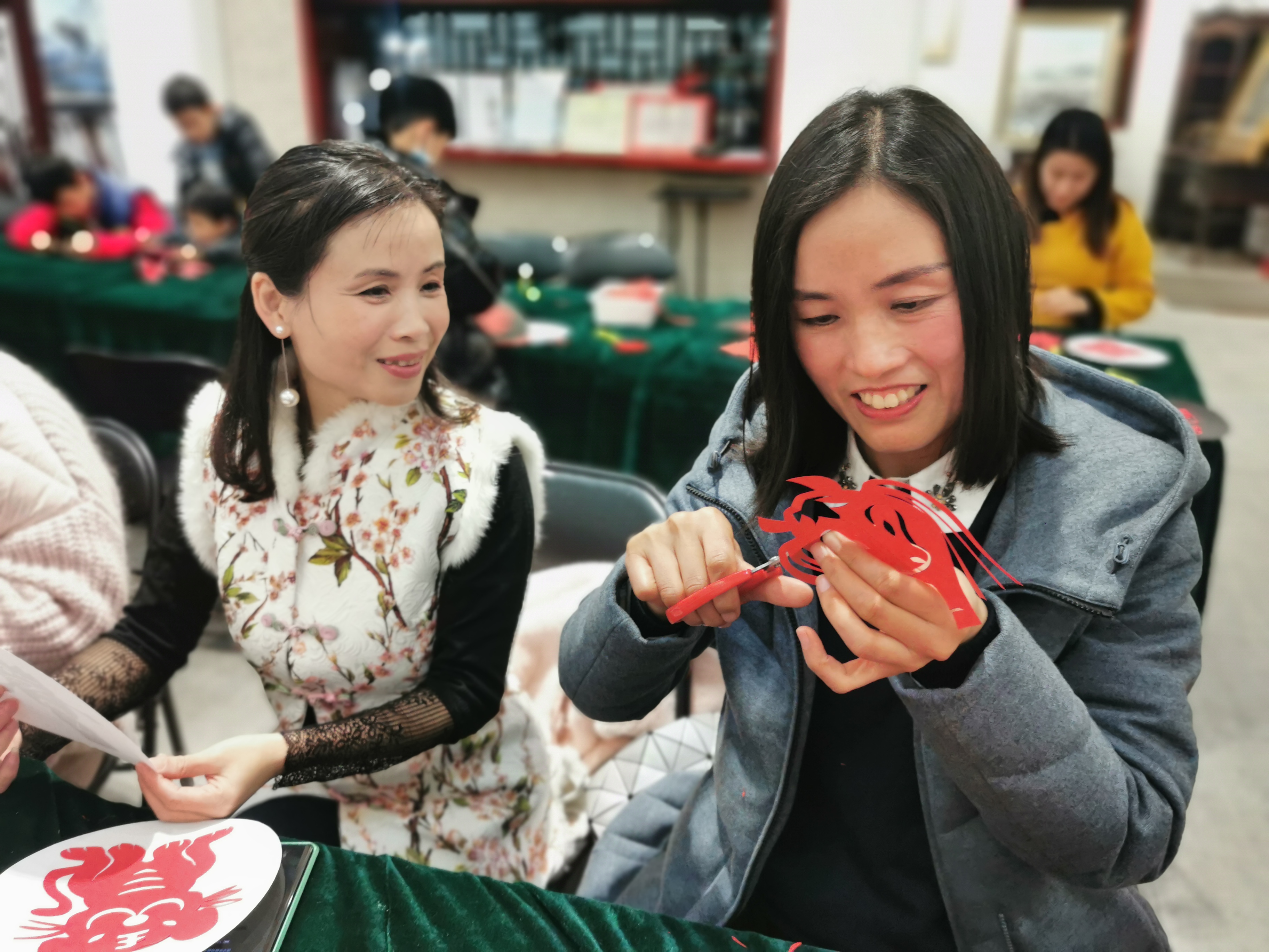 剪紙表現(xiàn)了中華民族淳厚雋永的民情與民風(fēng),是中國民間最為流行的一種藝術(shù)形式。為了讓大家學(xué)習(xí)、傳承這種極具傳統(tǒng)色彩的藝術(shù),蕓雅讀書社組織了學(xué)習(xí)剪紙的活動?,F(xiàn)場,大家用剪刀在紅紙上剪出福、祿、壽、喜和各種圖案,極具喜慶吉祥的寓意,讓人們感受到了傳統(tǒng)新年的熱鬧。②8