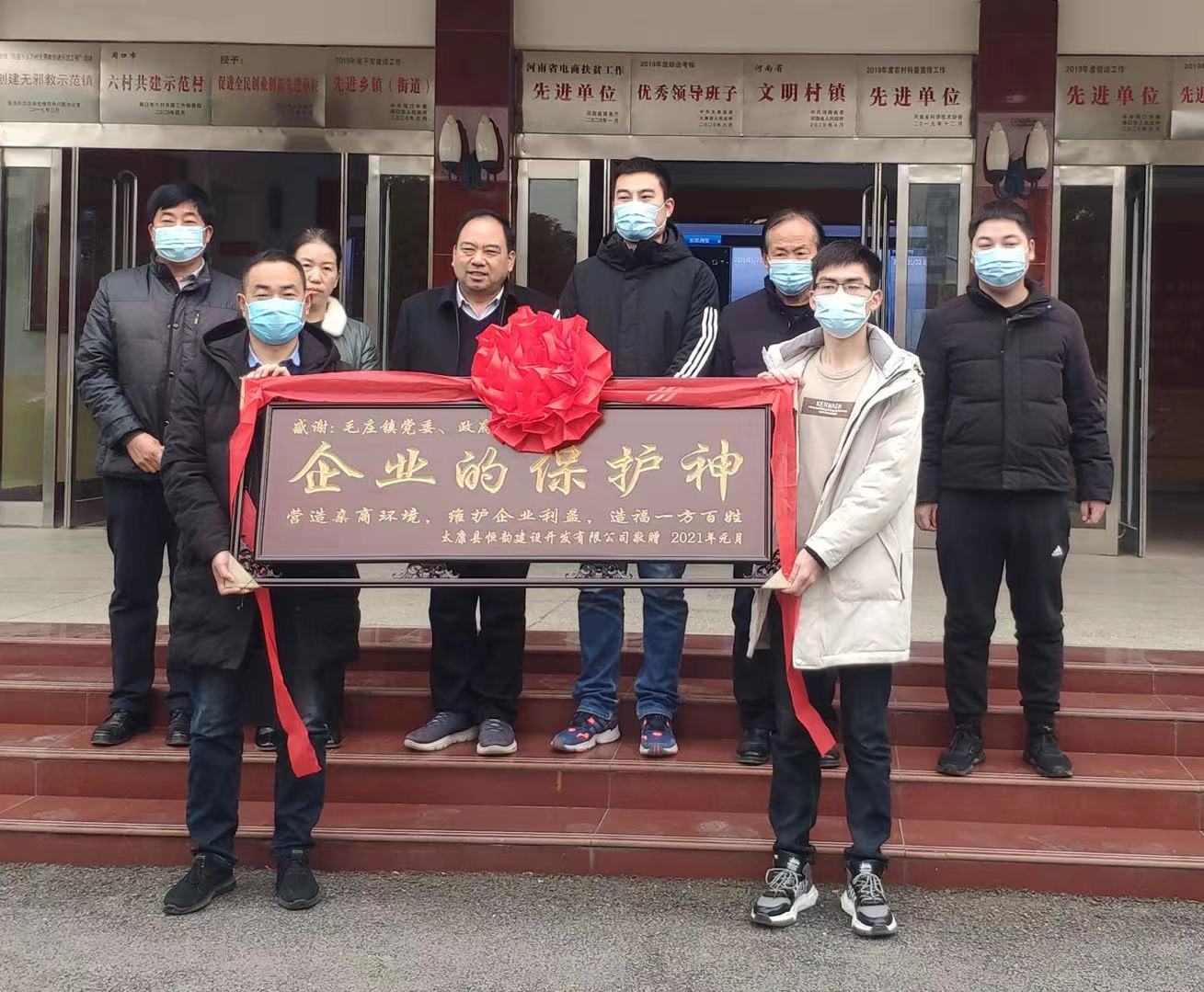 1月22日上午,太康縣毛莊鎮(zhèn)政府大門(mén)前人頭攢動(dòng),人聲鼎沸。在眾人的嘖嘖稱贊中一塊鐫刻著“企業(yè)的保護(hù)神”的牌匾被遞交到該鎮(zhèn)工作人員手中。
