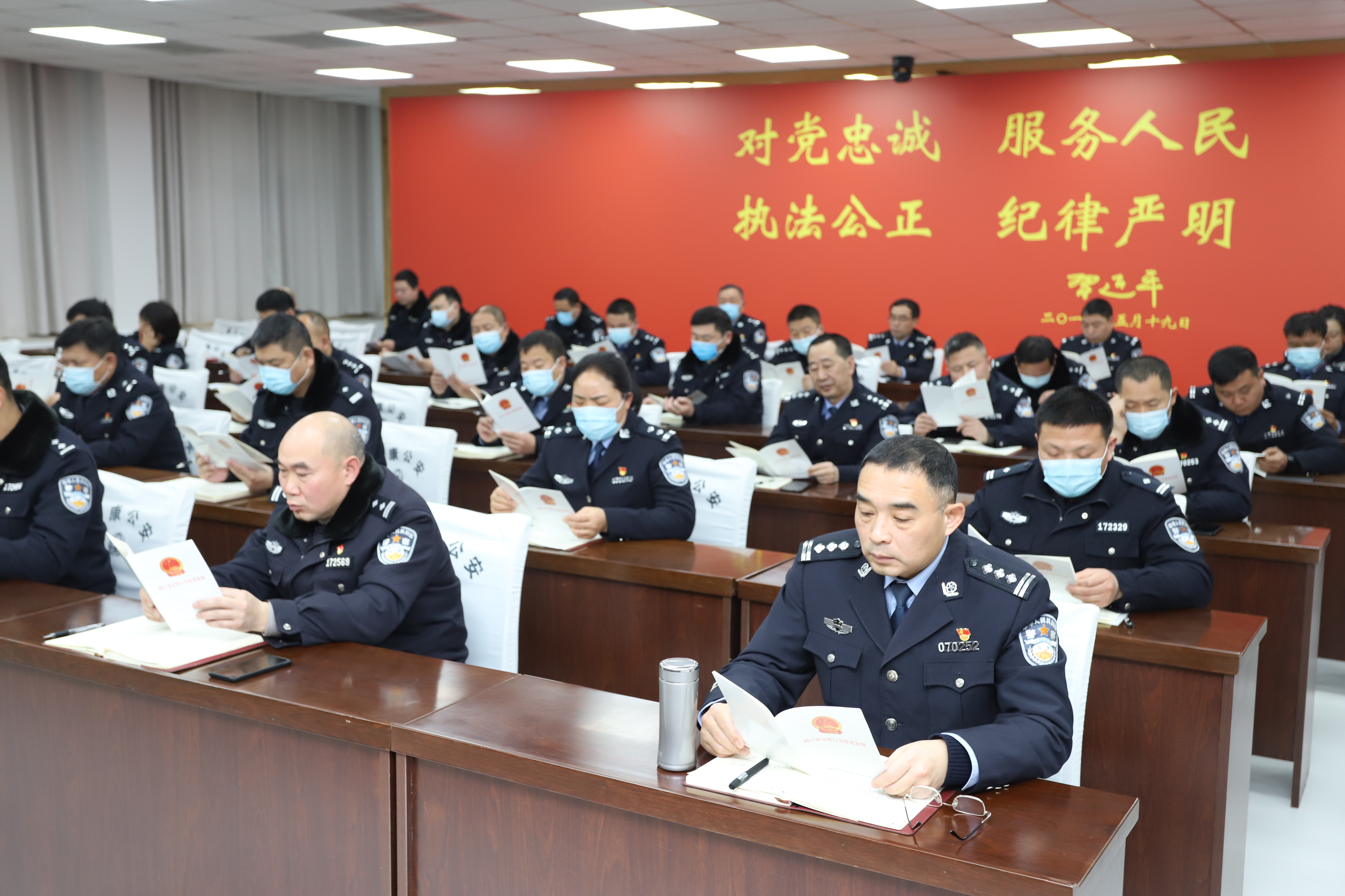 太康縣公安局重視精神文明建設(shè)工作,日前局黨委號(hào)召全體民警說(shuō)文明話,做文明事,爭(zhēng)做文明警察,創(chuàng)建文明警營(yíng)活動(dòng)。圖為該局組織民警學(xué)習(xí)《周口市文明行為促進(jìn)條例》。③5