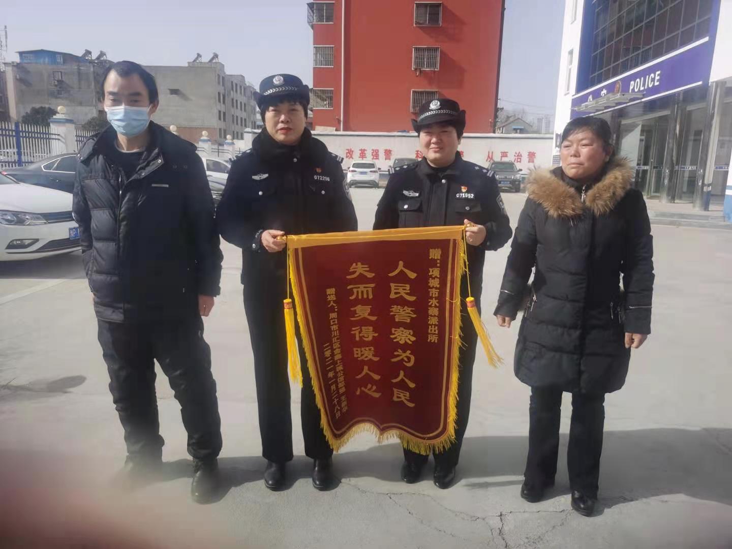 1月28日上午,鄒某夫婦手持一面 “人民警察為人民 失而復(fù)得暖人心”的錦旗,來到項城市公安局水寨派出所,向所長韓莉等民警表示感謝。