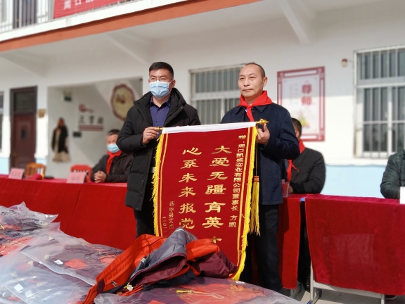 春節(jié)臨近,方凱自掏腰包6萬余元,購(gòu)買164套新校服捐贈(zèng)給西華縣艾崗鄉(xiāng)半截樓小學(xué),一如既往地將大愛播撒與傳遞。說起方凱的愛心行動(dòng),那是不勝枚舉。方凱10余年來堅(jiān)持幫貧濟(jì)困,每年都采取不同的方式,為貧困戶、貧困大學(xué)生、環(huán)衛(wèi)工、留守兒童、敬老院、貧困學(xué)校、福利中心智障孩子和災(zāi)區(qū)等進(jìn)行愛心捐助,已經(jīng)累計(jì)捐款捐物達(dá)1600多萬元。為了表達(dá)對(duì)方凱的謝意,西華縣艾崗鄉(xiāng)半截樓小學(xué)向方凱贈(zèng)送了“大愛無疆育英才,心系未來報(bào)黨恩”的錦旗,同時(shí),還鄭重聘請(qǐng)方凱為該校名譽(yù)校長(zhǎng)。