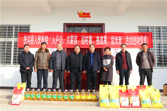 2月8日上午,扶溝縣人民醫(yī)院黨委書記、院長何躍東,副院長徐冰、王月鳳、齊建平,帶著米、食用油等慰問品到曹里鄉(xiāng)刁灣村開展“話脫貧、感黨恩、奮進(jìn)新時(shí)代”主題活動(dòng),送去新春的祝福。