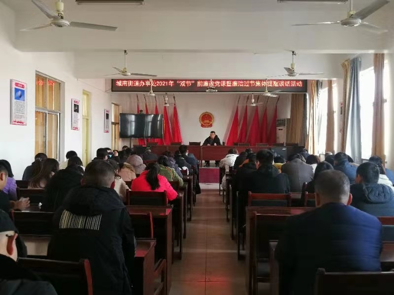 在春節(jié)、元宵節(jié)即將來臨之際,川匯區(qū)城南街道辦事處開展2021年“雙節(jié)”前廉政黨課暨廉潔過節(jié)集體談話活動,要求黨員干部增強廉潔自律意識、筑牢思想防線,確保過一個風清氣正的“雙節(jié)”。