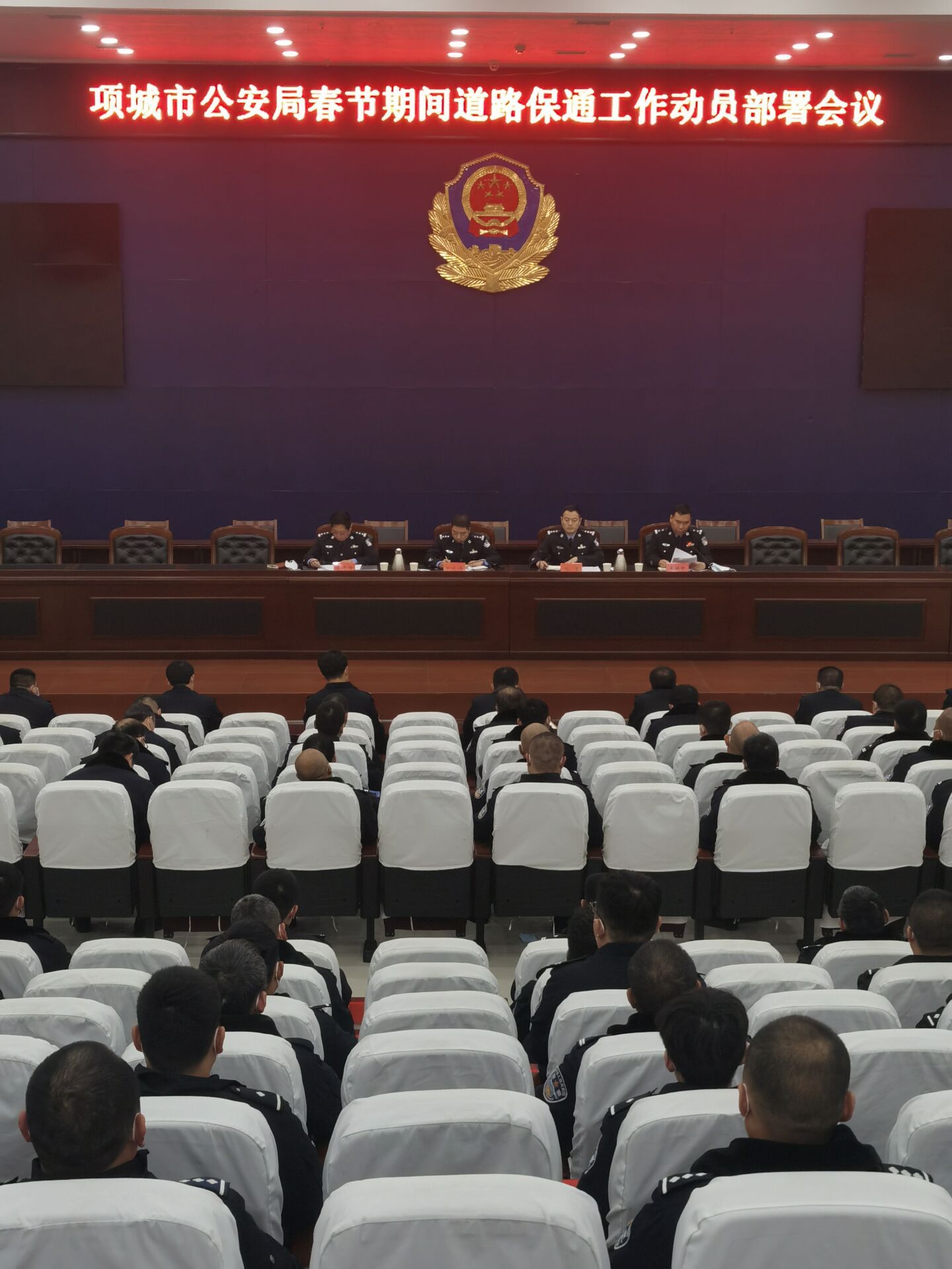 2月8日下午,項城市公安局在一樓會議室召開春節(jié)期間道路保通工作動員部署會議,對2021年春節(jié)期間道路保通工作進行全面安排部署。副市長、公安局長萬東偉,局黨委副書記、副局長陳重,局黨委委員、副局長王貴峰出席會議,交警大隊和各鎮(zhèn)辦派出所負責人及交警大隊各中隊部分民警、輔警參加了會議。陳重主持會議。萬東偉在講話中指出,春節(jié)期間道路保通工作市委市政府領導高度關注、人民群眾熱切期盼,關乎全市人民福祉,關乎社會安全穩(wěn)定,各參戰(zhàn)單位要提升站位、細化措施、夯實責任、扎實工作,確保全市人民愉快度過安寧、祥和的新春佳節(jié)。萬東偉要求,一定要堅守崗位。堅決克服麻痹思想,堅守工作崗位,忠誠履行工作職責,出色完成各項工作任務。一定要熱情服務。要把服務群眾理念貫穿始終,對群眾的報警、求助要第一時間到位,確保展開調(diào)查和救助,提升服務群眾水平,最大限度爭取群眾理解和支持。一定要規(guī)范執(zhí)法。絕不能對當前的反腐形勢有模糊認識,堅決做到廉潔公正執(zhí)法,牢固樹立公安良好形象,要加強法律法規(guī)學習,時刻心存敬畏,堅守執(zhí)法底線,嚴防違紀違法的情況發(fā)生。一定要密切配合。各部門一定要有大局意識,牢固樹立一盤棋思想,相互配合,緊密協(xié)作,確保各項工作扎實有效開展。同時,要做好后勤保障和民警、輔警安全防護工作,堅決杜絕民警、輔警傷亡事件。