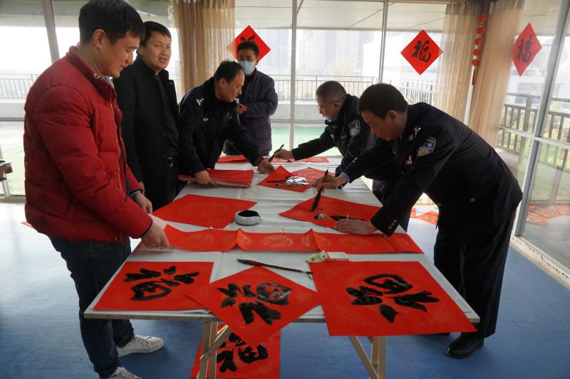 金牛賀歲來(lái)祥瑞,翰墨飄香迎新春。為弘揚(yáng)中華傳統(tǒng)文化,落實(shí)“從優(yōu)待警”舉措,傳遞市局黨委的親切慰問(wèn)和關(guān)心關(guān)懷,豐富警營(yíng)文化生活,營(yíng)造歡樂(lè)祥和的節(jié)日氛圍,2月9日,項(xiàng)城市公安局在三樓大廳開展書贈(zèng)春聯(lián)活動(dòng),孫沄、閆永紅等5名警營(yíng)書法家及16名蓮溪書院師生揮毫潑墨,現(xiàn)場(chǎng)為民警、輔警及工作人員義寫春聯(lián)、福字2000余套,受到了廣大民警、輔警的熱烈歡迎和充分好評(píng)。