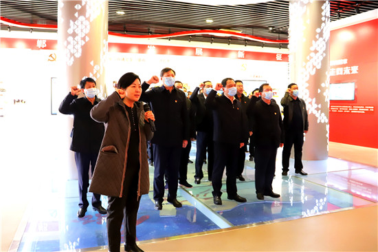 2月18日,新年上班第一天,市人大常委會副主任、鄲城縣委書記羅文閣,縣委副書記、縣長李全林帶領縣四個班子領導和部分縣直單位黨員干部,開展中共黨史學習教育活動,激勵全縣各級黨員干部不忘初心、牢記使命,在新時代不斷加強黨的建設,更加緊密地團結在以習近平同志為核心的黨中央周圍,始終保持永不懈怠的精神狀態(tài)和一往無前的奮斗姿態(tài),振奮精神,堅定信心,銳意進取,真抓實干,奮力譜寫全面建設社會主義現(xiàn)代化鄲城新篇章,以優(yōu)異成績迎接建黨100周年。