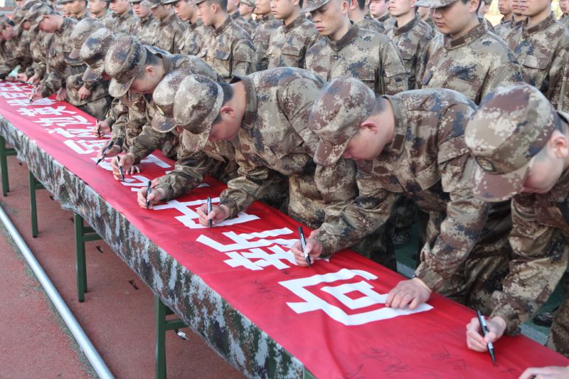 在十幾米“向新時代衛(wèi)國戍邊英雄官兵學(xué)習(xí)”的條幅上每一名應(yīng)征青年都鄭重地簽上自己的名字。