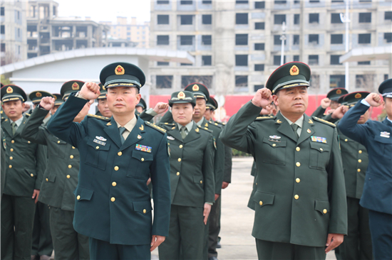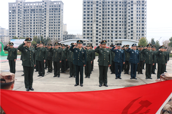 2月26日下午14時,西華縣人武部營區(qū)內(nèi),鮮紅的黨旗迎風(fēng)飄揚(yáng)。來自全縣17個鄉(xiāng)鎮(zhèn)、5個城區(qū)辦事處武裝部的全體專武干部黨員與該部現(xiàn)役干部、文職、職工黨員共計60余人集聚這里,隆重集體過“政治生日”。