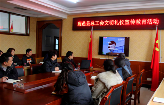 鹿邑縣總工會全體人員集中觀看了《常州市市級機關工作人員文明禮儀宣傳教育片》。從接聽電話、公務接待、參加會議、乘坐電梯、公共場所、文明觀演、文明出行等詳細介紹了機關工作人員應做到的禮儀規(guī)范,提醒大家各項禮儀中的注意事項。