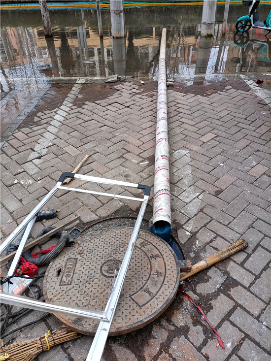 當(dāng)日上午,記者前往維也納小區(qū)大門前實(shí)地查看,還未到維也納小區(qū)大門,一股刺鼻的氣味就已經(jīng)迎面而來(lái)。近前則看到維也納小區(qū)北大門前面的慢車道上形成一個(gè)寬數(shù)米、長(zhǎng)達(dá)幾十米、深約10多厘米的污水帶,污水散發(fā)著難聞的氣味,人行道上的垃圾桶、部分停放在路邊的車輪泡在污水里,有的地方污水已經(jīng)開(kāi)始向蓮花路主路上流淌。人行道上的一處窨井井蓋半開(kāi)著,里面的污水基本與地面持平,水面上漂浮著垃圾,窨井里一根塑料管子一直通到慢車道上,蓮花路主路面上的一個(gè)下水口也汩汩的向外冒著污水,進(jìn)出維也納小區(qū)的車輛只有涉水而過(guò),行人和騎車出行的居民不得不繞行通過(guò)。維也納小區(qū)門前的一名保安說(shuō),他每天在大門前值班,這幾天一直聞這些污水散發(fā)出來(lái)的氣味,“實(shí)在太難聞了?!备浇患页械睦习逭f(shuō),維也納小區(qū)前面的污水已經(jīng)存在好幾天了,也沒(méi)有看到有人前去處理,插在窨井里面的管子大概是向路面抽下水道里面的污水用的,但是沒(méi)有看到任何機(jī)械設(shè)備,也沒(méi)見(jiàn)那根管子起什么作用。