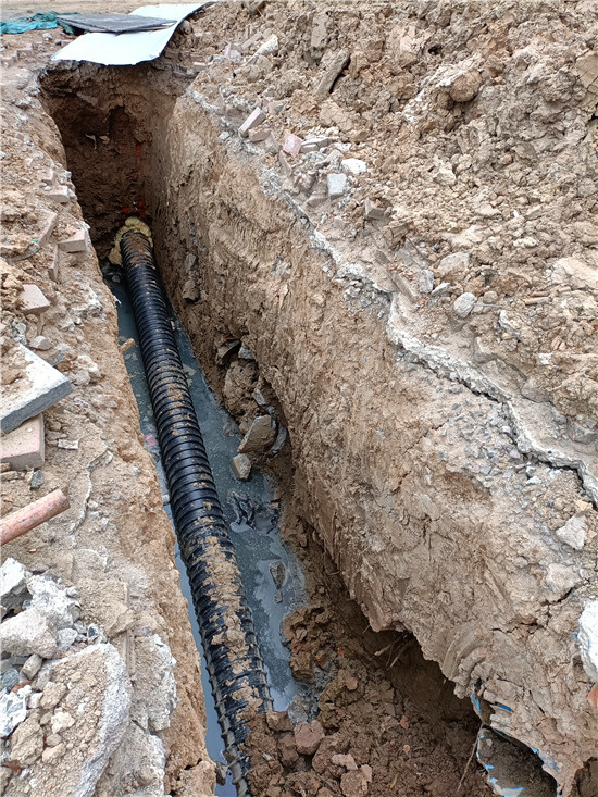 居住在維也納小區(qū)的幾位居民分析說(shuō),維也納大門前邊的污水有可能是對(duì)面施工堵塞下水道后造成污水溢出造成的。記者又來(lái)到維也納小區(qū)對(duì)面的馨蓮茗苑小區(qū)門前,那里路面沒(méi)有積水,正在進(jìn)行的市政工程施工工地也沒(méi)有看到有大量污水流淌,在馨蓮茗苑大門東邊不遠(yuǎn)處有一條挖開(kāi)的管道溝槽,溝槽的底部有少量污水。剛下班的一名工人師傅說(shuō),現(xiàn)在他們正在修建新的下水道,管道建好還得一段時(shí)間,舊的排水管道還在使用,至于路南邊的污水與正在施工的工程有沒(méi)有聯(lián)系,他們也說(shuō)不清楚。