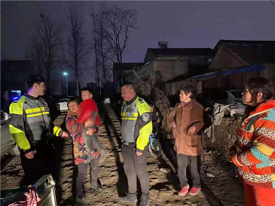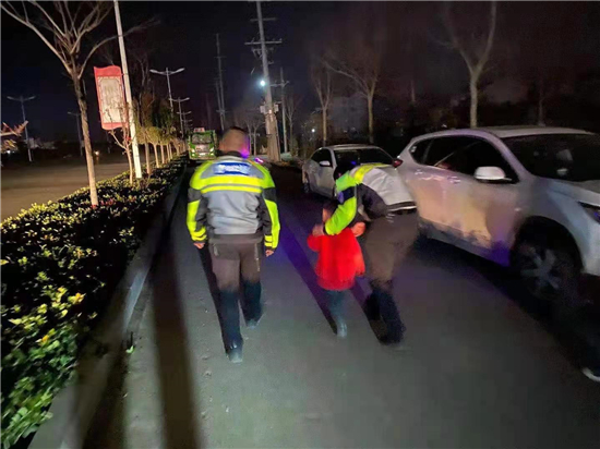 3月12日晚,鄲城縣交警大隊(duì)鐵騎中隊(duì)副中隊(duì)長(zhǎng)張?chǎng)沃蛋噙^(guò)程中發(fā)現(xiàn)一位迷路小孩,張新等人想方設(shè)法把孩子護(hù)送回家。