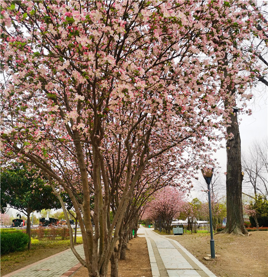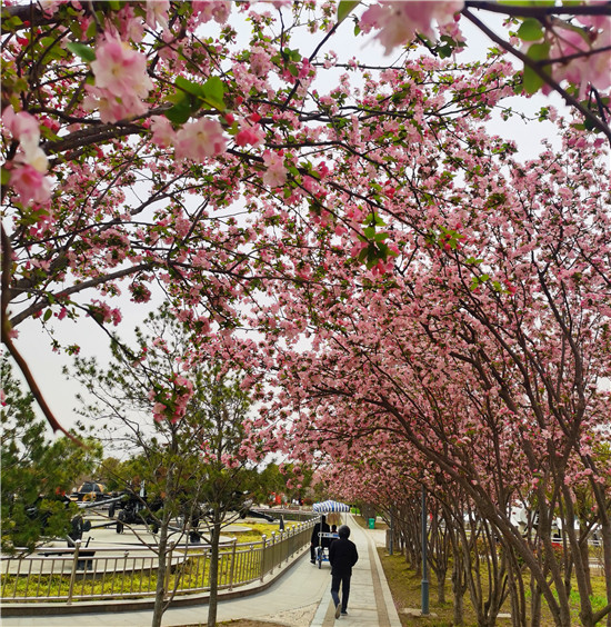 日前,周口公園里的海棠紛紛綻放。在公園內(nèi)的道路上,海棠已進(jìn)入盛花期,粉色的花朵如夢(mèng)似幻,令人沉醉。