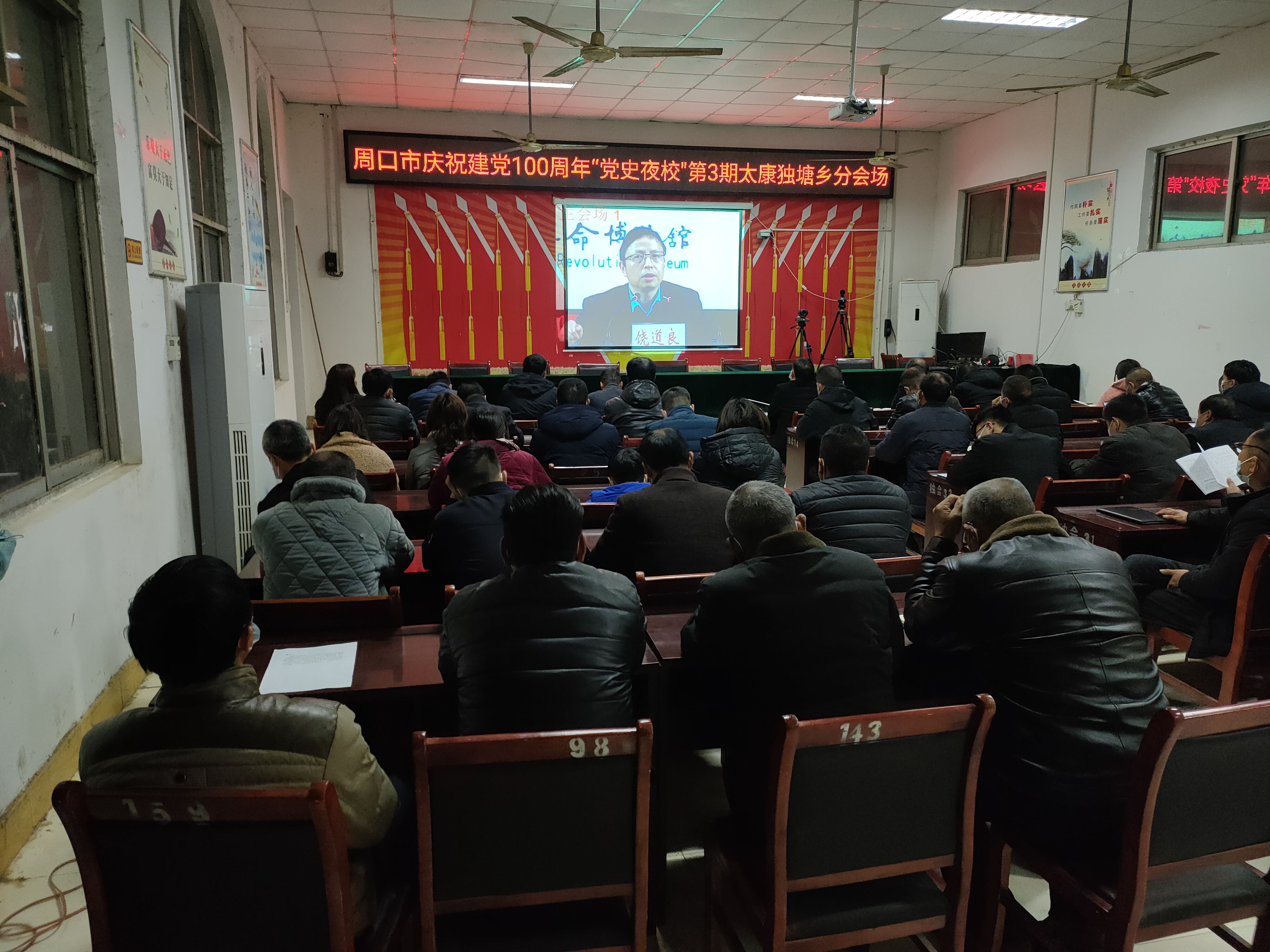 3月18日晚,周口市舉辦慶祝中國共產(chǎn)黨成立100周年“黨史夜校”第三期專題講座。太康縣獨塘鄉(xiāng)組織鄉(xiāng)領導班子、鄉(xiāng)政府機關黨支部全體黨員、34個行政村支部書記、鄉(xiāng)直機關負責人、各行政村全體黨員、兩委干部在鄉(xiāng)政府會議室和各行政村分會場收聽收看。
