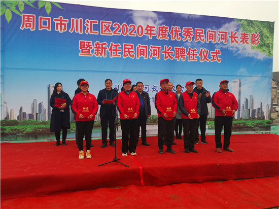 會場設(shè)在中州路橋北頭向東100米的沙潁河北岸。區(qū)河長辦主任李海濤宣讀《川匯區(qū)河長制辦公室關(guān)于表彰2020年優(yōu)秀“民間河長”的決定》《周口市川匯區(qū)河長制辦公室關(guān)于聘任“民間河長”的通知》。與會領(lǐng)導(dǎo)共同為10名受表彰的優(yōu)秀“民間河長”頒發(fā)榮譽證書,為20名新任“民間河長”頒發(fā)聘任證書。