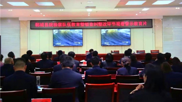 4月19日上午,淮陽區(qū)人民檢察院召開政法隊伍教育整頓查糾整改環(huán)節(jié)警示教育會。