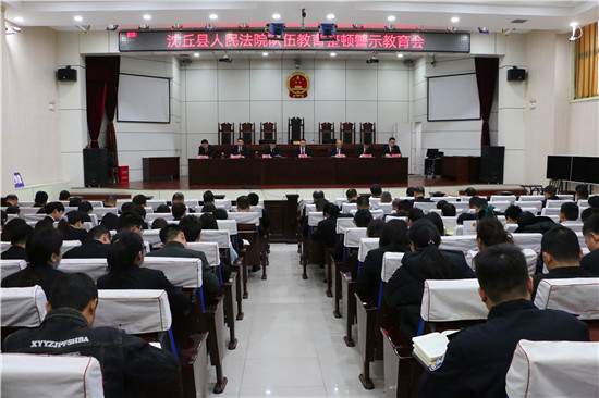 為扎實開展隊伍教育整頓,深入推進學習教育環(huán)節(jié)中的警示教育環(huán)節(jié),促使全院干警知敬畏、存戒懼、守底線。3月22日,沈丘縣人民法院召開警示教育大會??h紀委監(jiān)委派駐紀檢監(jiān)察組組長、黨組副書記王宇根據(jù)身邊的案例為大家做了一場警示教育報告。