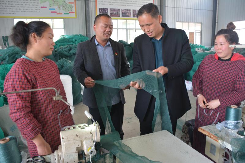 3月27日,商水縣平店鄉(xiāng)李崗村“商水縣龍巢網(wǎng)業(yè)公司”經(jīng)理羅國(guó)昌向村黨支部書記李金棋(左二)介紹漁網(wǎng)編織產(chǎn)業(yè)產(chǎn)銷帶貧情況。羅國(guó)昌和妻子劉清華2009年創(chuàng)辦漁網(wǎng)編織加工廠、2017年擴(kuò)建新區(qū),現(xiàn)有3個(gè)大型生產(chǎn)車間庫(kù)房,發(fā)展30多個(gè)分廠、40多個(gè)聯(lián)系點(diǎn),年產(chǎn)各種成品漁網(wǎng)500萬條,產(chǎn)品銷往國(guó)內(nèi)江蘇、安微、山東、河北、湖北等10多個(gè)省區(qū)和30多個(gè)沿??h市水產(chǎn)公司,部分出口到俄羅斯及東南亞地區(qū),年創(chuàng)產(chǎn)值約1.6億元,精準(zhǔn)幫扶225戶群眾脫貧,帶貧群眾有1萬余人。