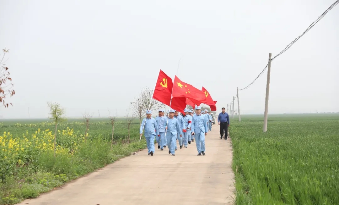 “我一定要跟著大部隊(duì)走,絕不掉隊(duì),不給紅軍前輩抹黑?!眲倓傋鐾晔中g(shù)的七一村黨支部書記何治安斬釘截鐵地說(shuō)。在七二村,熱情好客的七里倉(cāng)群眾不僅給“大軍”送來(lái)了西紅柿、黃瓜、茶雞蛋、香蕉等補(bǔ)給品,還表演了“祖國(guó)你好”、“美麗生活”等扇子舞,再現(xiàn)了當(dāng)年紅軍到哪都受人民群眾擁戴的情景,同志們的疲憊一下子煙消霧散.....按照拓展行程安排,在盆李村的“周口市第一個(gè)農(nóng)村黨支部舊址”,同志們進(jìn)行了參觀瞻仰和重溫入黨誓詞等活動(dòng),回顧了歷史,緬懷了先烈,震撼了心靈,錘煉了黨性。
