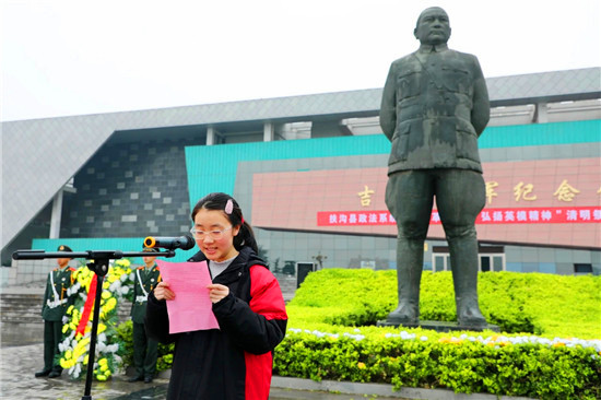 4月2日,扶溝高中校團委組織部分師生,懷著對烈士無限崇敬的心情,來到吉鴻昌將軍紀念館,祭掃吉鴻昌將軍銅像,緬懷吉鴻昌將軍。祭掃活動由高一團支部負責人吳肖老師主持。