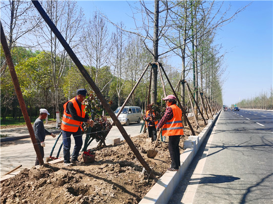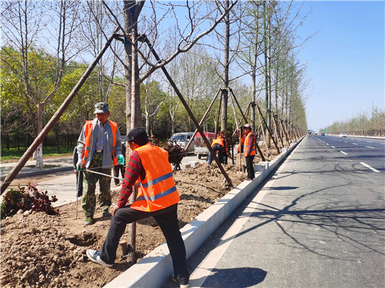 日前,氣溫回暖,春光明媚,正是種植樹(shù)木、養(yǎng)護(hù)苗木的好時(shí)節(jié)。連日來(lái),在周口大道北段,園林工人利用現(xiàn)在好時(shí)節(jié),忙于栽植各種樹(shù)木,建設(shè)綠化工程。