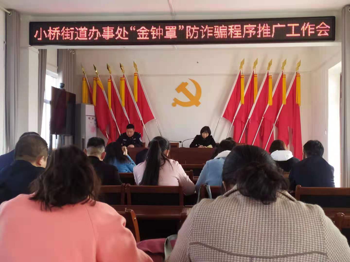 堅(jiān)持黨建引領(lǐng),高起點(diǎn)安排部署。辦事處堅(jiān)持以黨建統(tǒng)領(lǐng)為中心,第一時(shí)間成立了防范詐騙宣傳工作領(lǐng)導(dǎo)小組,立即召開(kāi)了全辦推廣“金鐘罩”程序?qū)n}會(huì),安排部署宣傳推廣工作。同時(shí),每周召開(kāi)“金鐘罩”放詐騙程序推廣小結(jié)會(huì),對(duì)各社區(qū)推廣注冊(cè)人數(shù)情況進(jìn)行日督查周統(tǒng)計(jì)通報(bào),對(duì)落后社區(qū)進(jìn)行通報(bào)批評(píng)。堅(jiān)持四級(jí)聯(lián)動(dòng),高規(guī)格落實(shí)責(zé)任。辦事處將下轄9個(gè)社區(qū)根據(jù)實(shí)際情況劃分為30個(gè)網(wǎng)格,形成了“科級(jí)干部—派出所民警—社區(qū)干部—志愿者服務(wù)隊(duì)”四位一體的小橋辦“金鐘罩”防詐騙推廣小組,由綜治中心牽頭搭線(xiàn),各社區(qū)干部、黨員志愿者和轄區(qū)派出所民警結(jié)成宣傳對(duì)子,挨家挨戶(hù)上門(mén)宣傳,夯實(shí)責(zé)任,主動(dòng)出擊,形成合力,成效明顯。