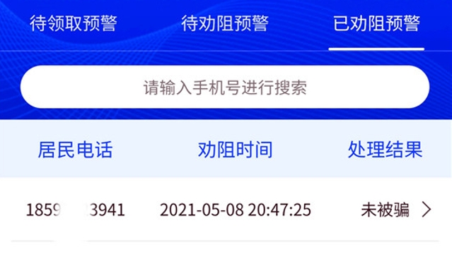 5月8日,鄲城縣公安局南關(guān)派出所社區(qū)民警收到“金鐘罩”推送的反詐預警信息,轄區(qū)居民郭某有受騙風險,社區(qū)民警第一時間聯(lián)系郭某核實了解相關(guān)情況并及時予以制止。