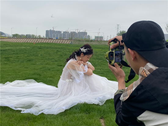 “太適合拍照了,在這拍出的照片很有高級感,隨手一拍就很好看?!睌z影師張建闊告訴記者,前兩天路過這里,看到這里的草長勢非常好,非常適合拍照,就帶著團隊過來了。