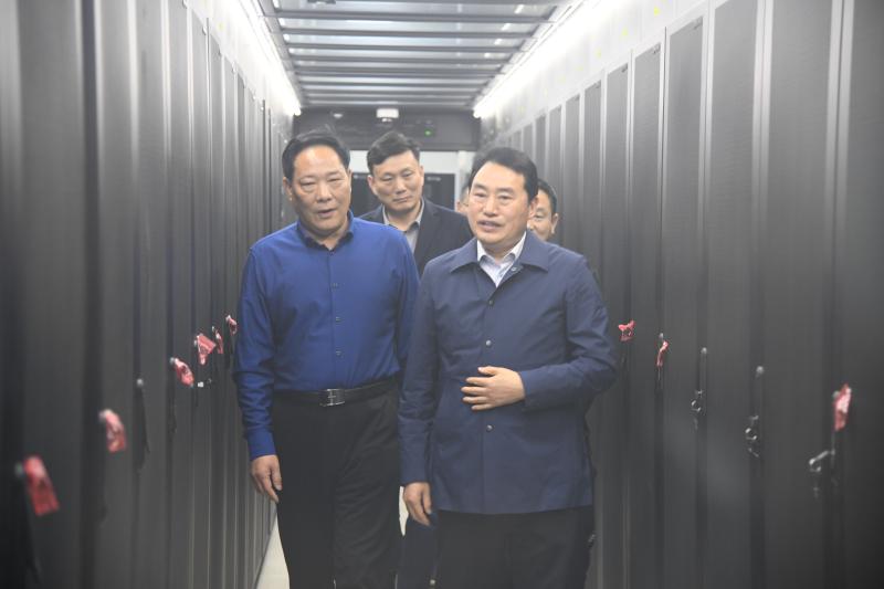 圖為:開封日報報業(yè)集團一行在參觀周口報業(yè)融媒體中心機房