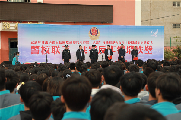 4月18日上午,鄲城縣打擊治理電信網(wǎng)絡(luò)新型違法犯罪“迅雷”行動(dòng)暨反詐宣傳進(jìn)校園活動(dòng)儀式在縣三高啟動(dòng)??h政府副縣長(zhǎng)、公安局長(zhǎng)陳鳳祥,縣政府辦公室主任賈培民,縣教體局黨組書(shū)記、局長(zhǎng)羅明黨等出席啟動(dòng)儀式,縣打擊治理電信網(wǎng)絡(luò)新型違法犯罪工作各成員單位、縣公安局、縣三高分別組成代表隊(duì)2200余人參加啟動(dòng)儀式,儀式由賈培民主持。