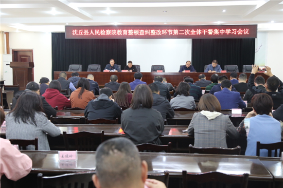 為扎實做好檢察隊伍教育整頓查糾整改環(huán)節(jié)工作持續(xù)開展,深入細(xì)致做好思想發(fā)動和政策落實,4月19日,沈丘縣檢察院開展隊伍教育整頓查糾整改環(huán)節(jié)第二次集中學(xué)習(xí)會議。院黨組成員、政治部主任胡新建主持會議。全體干警參加會議。