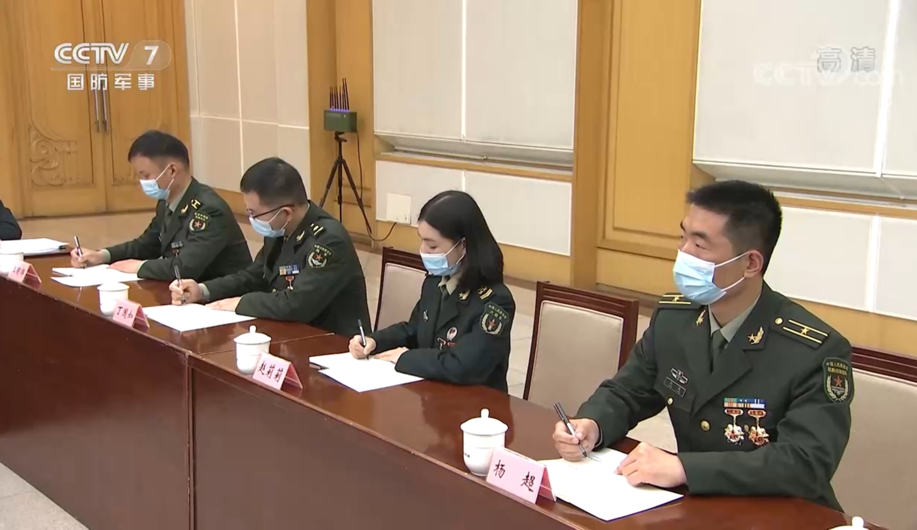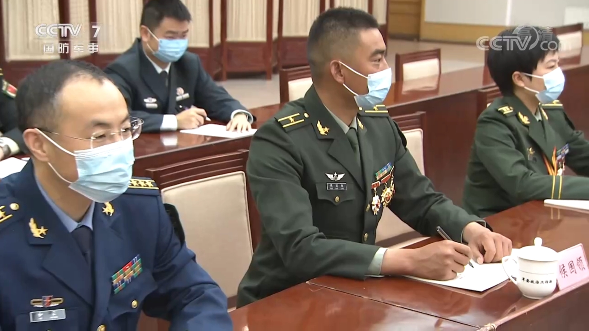 央視新聞截圖,侯國領(lǐng)(中)在座談會上認真聽講