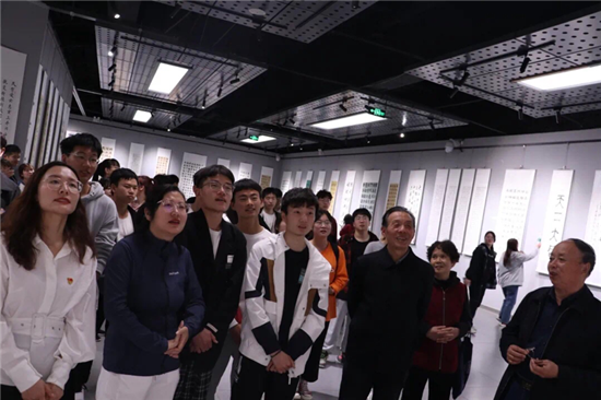 觀看過程中,離退休工作處理科支部四位老教師為同學(xué)們認(rèn)真講解每幅書法作品的來源和深義,將美育與黨史學(xué)習(xí)教育充分結(jié)合,以書法為媒向在場學(xué)生展開愛國主義教育、理想信念教育和革命傳統(tǒng)教育。