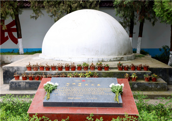 圖二:后人在劉波濤 、丁岐烈士墓前獻花