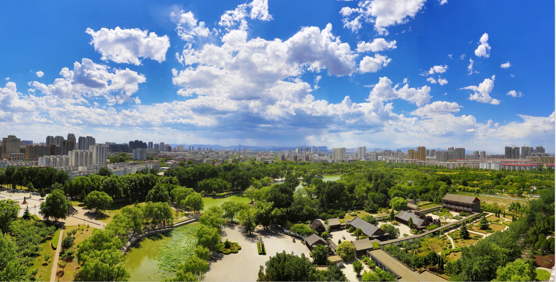 圖2:近年來,邢臺(tái)市主城區(qū)空氣質(zhì)量持續(xù)好轉(zhuǎn)。圖為邢臺(tái)市達(dá)活泉公園鳥瞰。(邢臺(tái)日?qǐng)?bào)社全媒體記者 黃濤 攝)