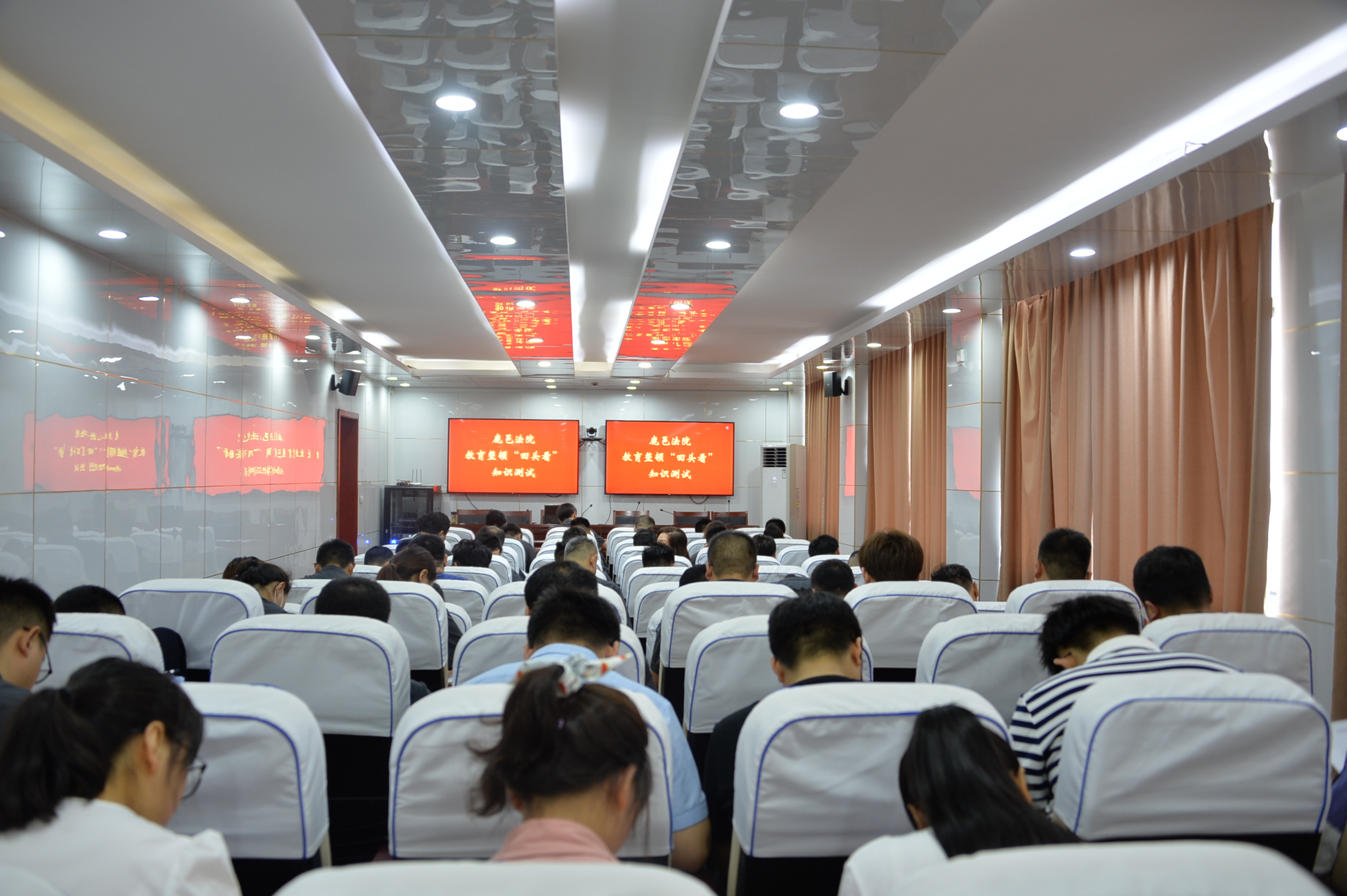 為鞏固和深化政法隊(duì)伍教育整頓成果,7月20日上午,鹿邑縣人民法院組織開展隊(duì)伍教育整頓“回頭看”應(yīng)知應(yīng)會(huì)知識(shí)測試,全體干警參加測試。