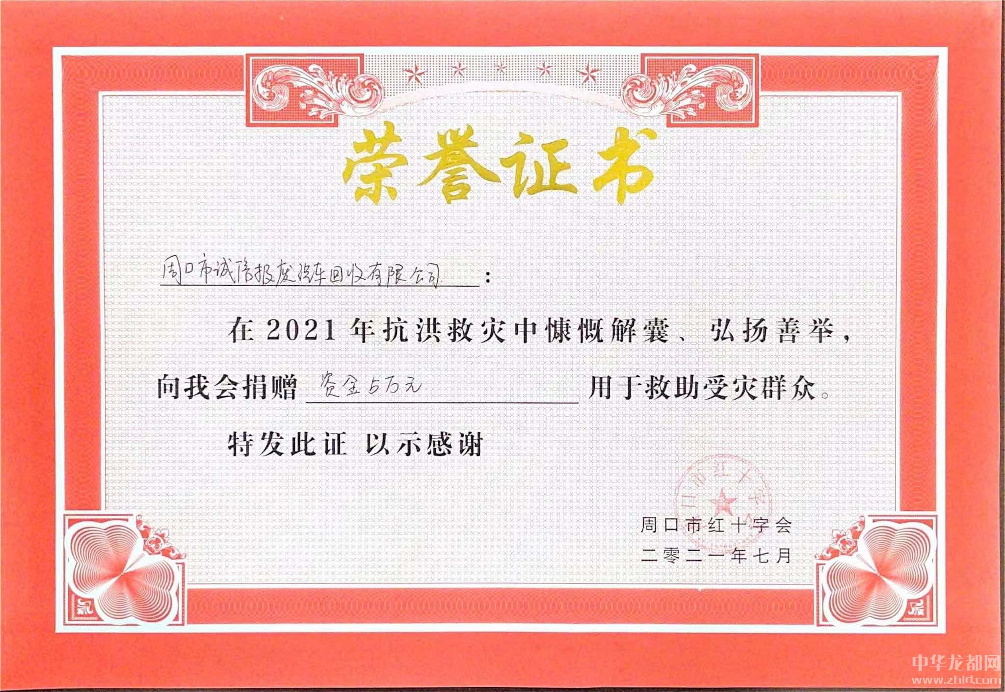 同時,張站國作為周口市誠信報(bào)廢汽車有限公司負(fù)責(zé)人,為切實(shí)履行企業(yè)的社會責(zé)任,周口市誠信報(bào)廢汽車有限公司于2021年7月27日向周口市紅十字會捐贈現(xiàn)金人民幣5萬元,用于防汛救災(zāi)、群眾幫扶、衛(wèi)生防疫和災(zāi)后重建工作。