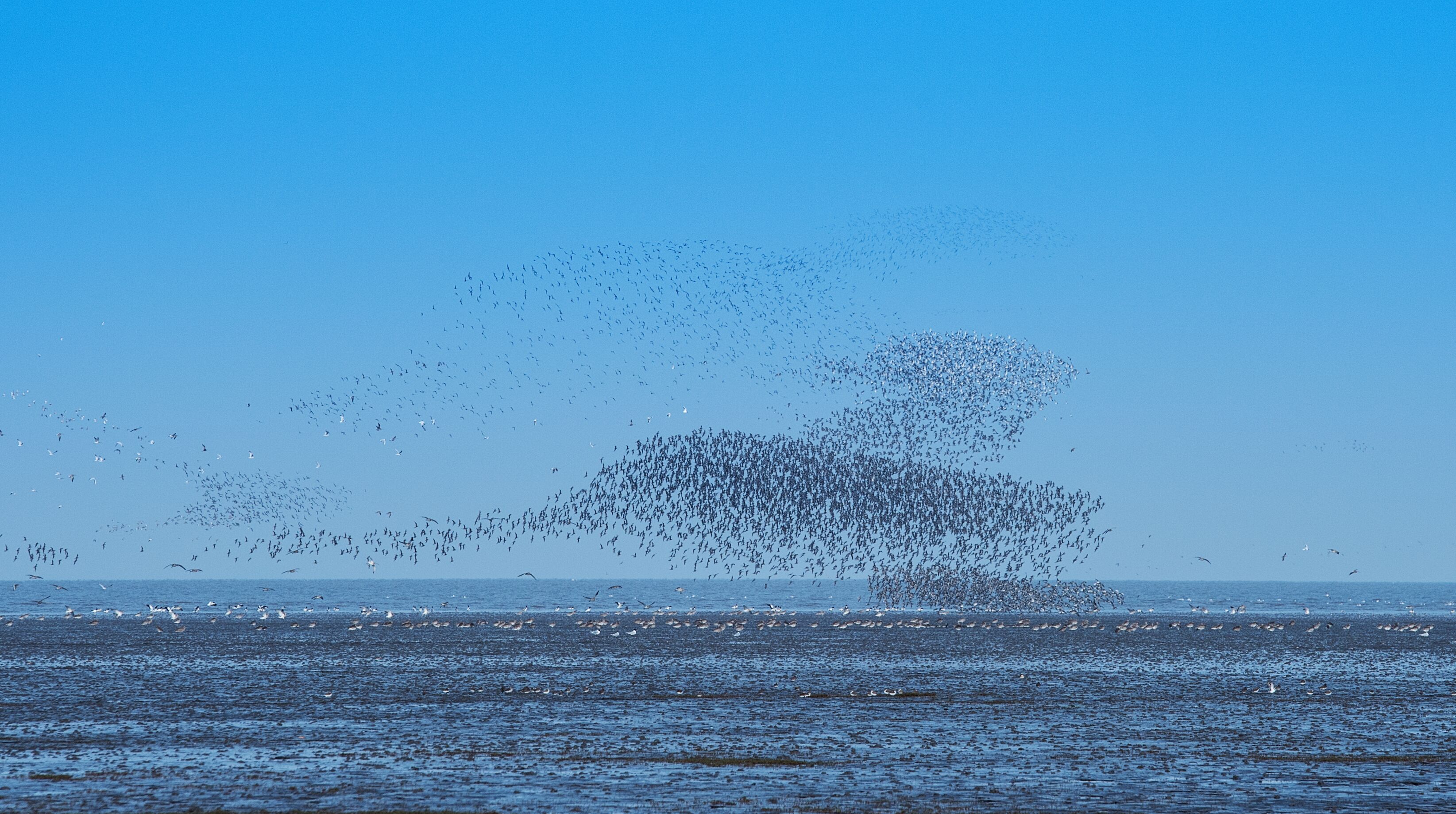 數(shù)萬只候鳥在營口大遼河口的濕地上覓食蓄力,起舞天空,構(gòu)成一道道妙不可言的景觀,這也是對環(huán)境敏感的候鳥為營口生態(tài)環(huán)境投出的信任票。祝雅芬攝