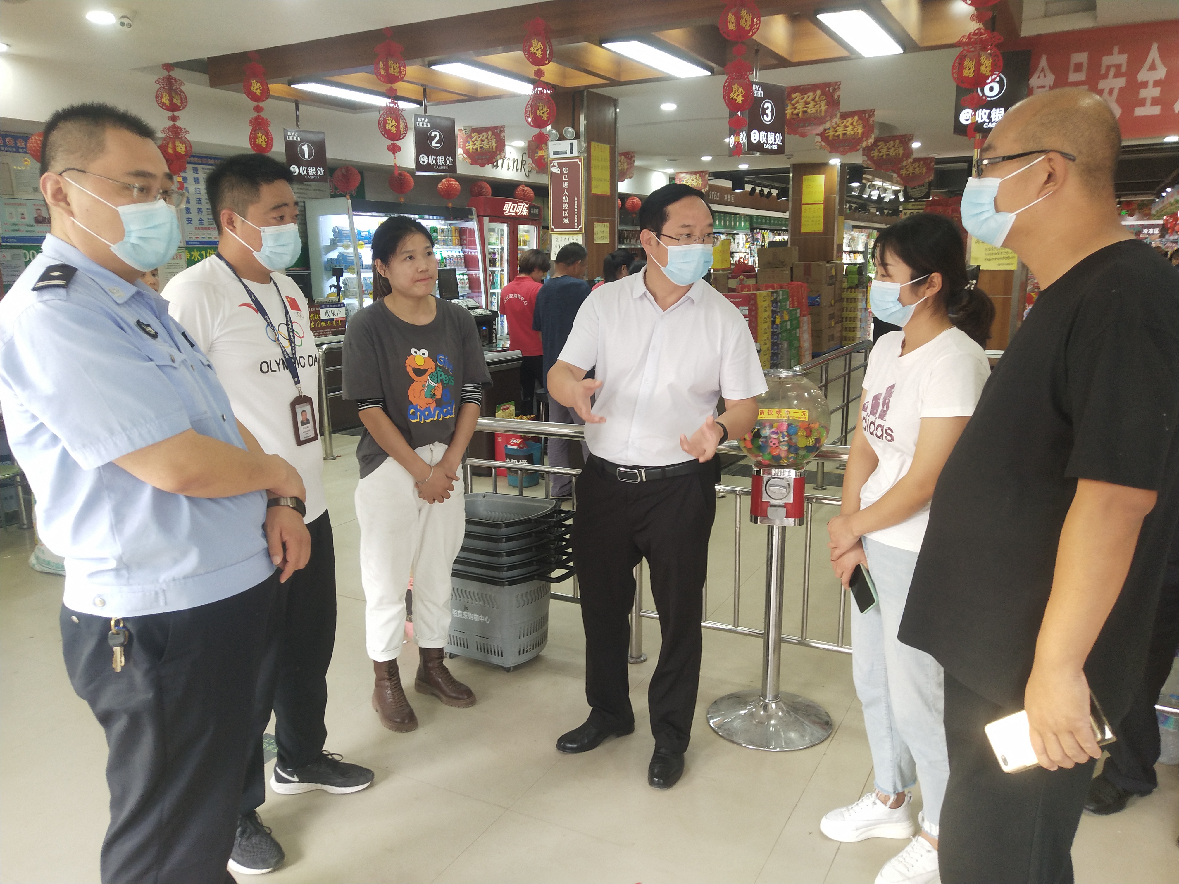 “你們這個超市經(jīng)營面積多少?配備多少消防栓、滅火器?有幾個逃生通道?員工是否熟知消防安全常識?油炸熟食肉類食品是如何保障質(zhì)量的……”“咱樓上樓下營業(yè)面積共2000平方米,配備20個消防栓、60個滅火器,有2個逃生通道,每周都對員工進行消防安全演練,每一批食品都有檢測報告……”10月1日下午,商水縣平店鄉(xiāng)黨委書記段文海、鄉(xiāng)長位望喜、主管安全生產(chǎn)的副鄉(xiāng)長劉春苗帶隊,組織鄉(xiāng)派出所、市場監(jiān)督所相關人員到安全生產(chǎn)重點場所“萬果園超市90號”連鎖店開展國慶節(jié)安全生產(chǎn)暗訪檢查,超市負責人呂四偉詳細介紹了安全經(jīng)營情況。