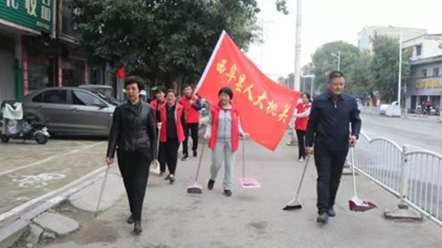 10月11日,西華縣人大常委會主任周曉燕帶領(lǐng)機(jī)關(guān)工作人員,深入分包區(qū)域的街道社區(qū)積極開展“創(chuàng)衛(wèi)”工作。